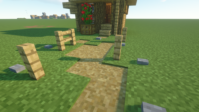 8.剷出一條到小屋的路,裝飾一下這條路。
