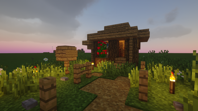 9.周圍放上火把等待草長出來一個溫馨的小屋就做好了。