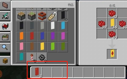 首頁 我的世界 問答 我的世界五星紅旗怎麼做? 2022-08-26 我的世界五星紅旗製作方法如下:1、製作五星紅旗首先需要準備:紅色旗幟、磚塊、工作台、蒲公英黃染料和玫瑰紅染料。2、在工作台里依次把材料按照順序放入即可獲得。以上就是我的世界五星紅旗製作的相關內容,希望可以幫到各位。