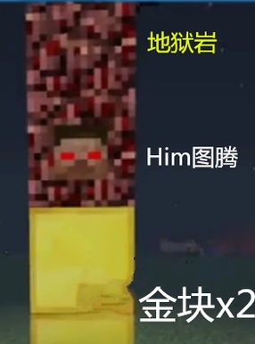 3,安裝兩個金塊,一個him圖騰,一塊地獄岩的順序擺放完成後,點燃地獄岩。