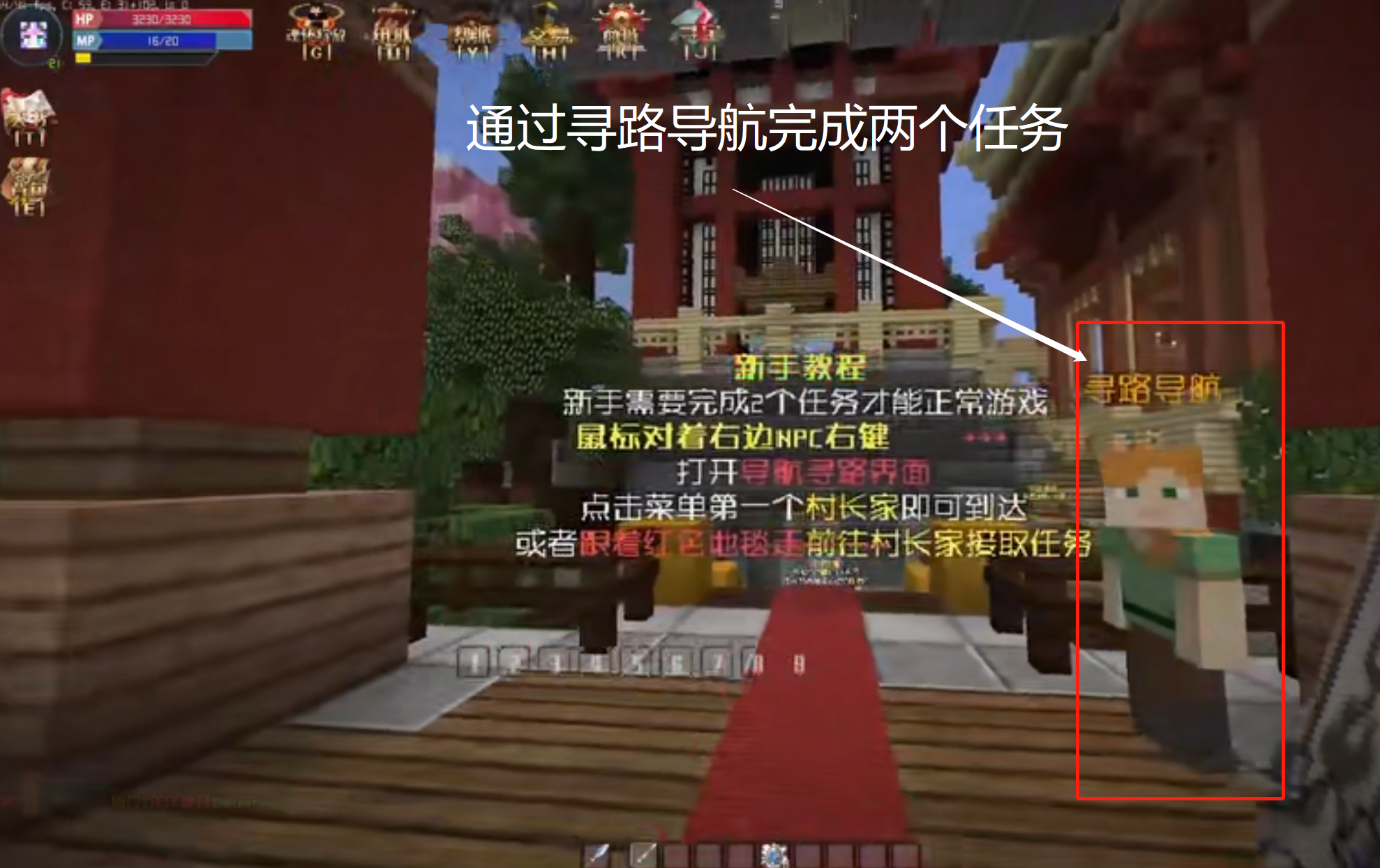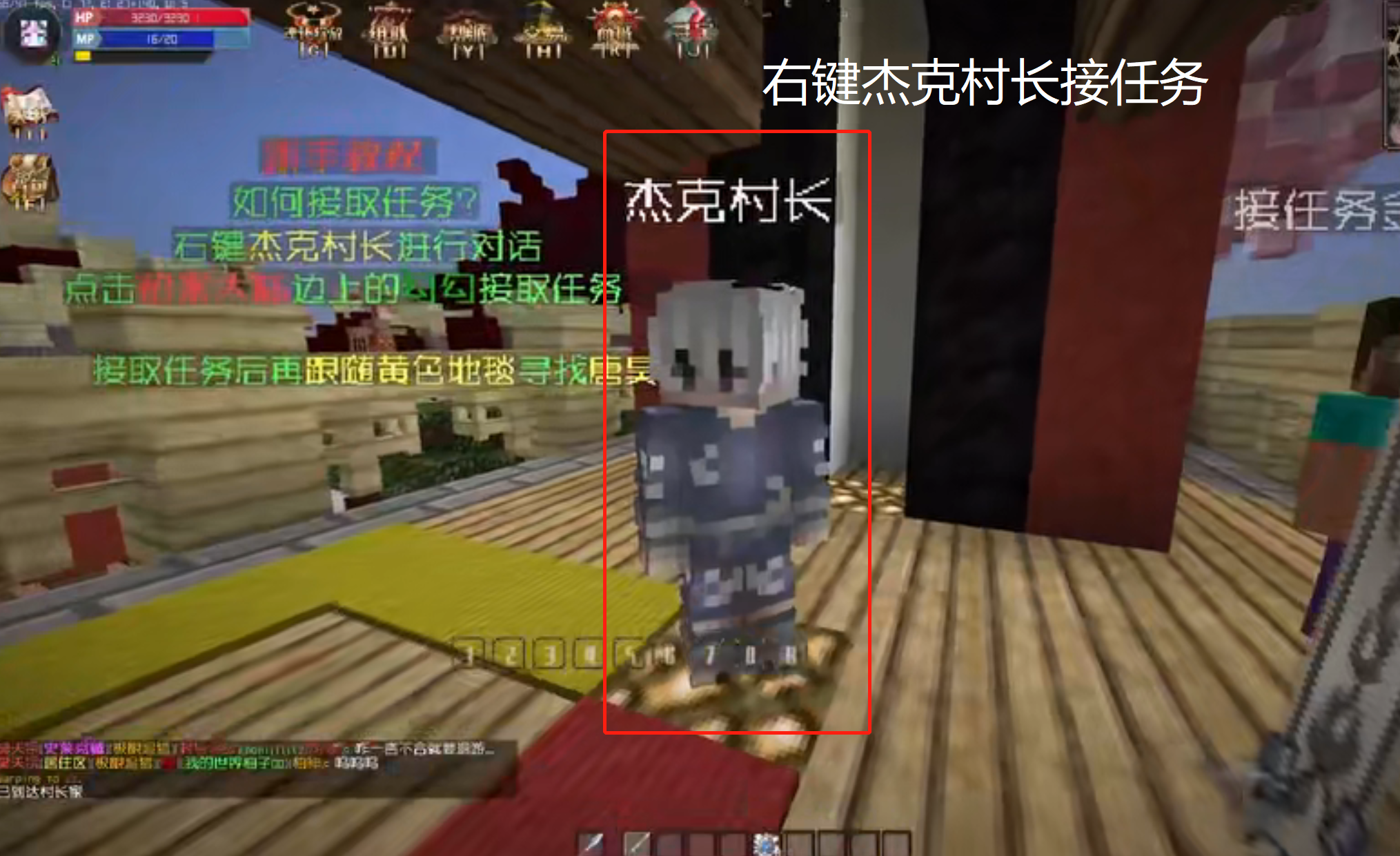 二、通過尋路導航找到村長接任務,這個任務是跟隨黃色地毯找到唐昊。