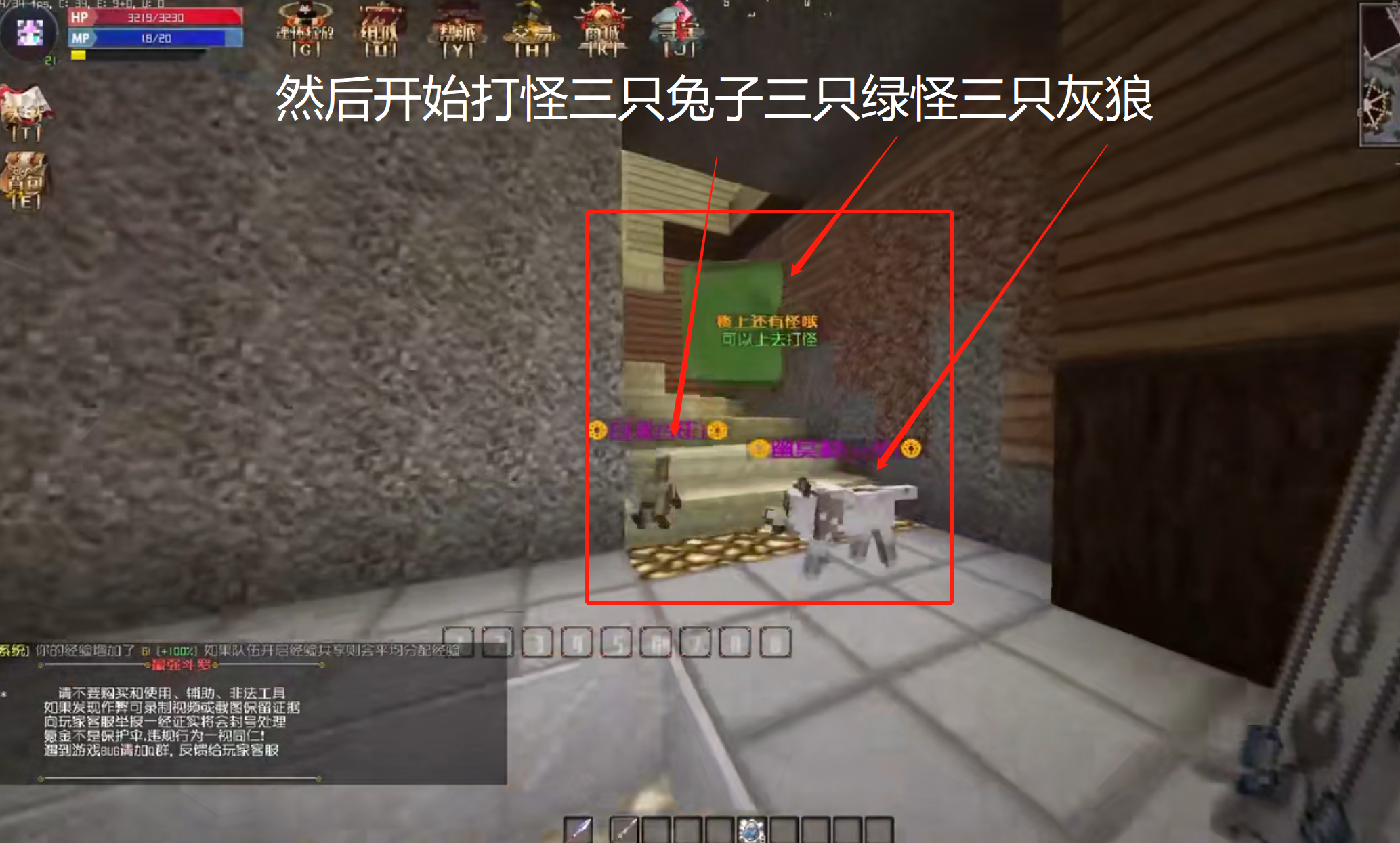 五、然後在覺醒訓練場我們刷三隻兔子,三隻綠色怪和三隻灰狼,打完之後會自動進入副本。