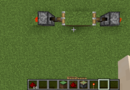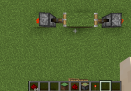 7.在中間兩側每側都放置兩個粘性活塞,並且放置上方塊。如圖所示