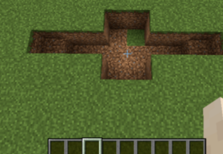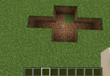 1.先挖一個高2X寬3格長2格的坑然後在左右兩側挖一個長2X高2的格的坑。如圖所示