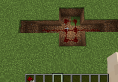 3.在深兩格的圖形上放置紅石線。如圖所示