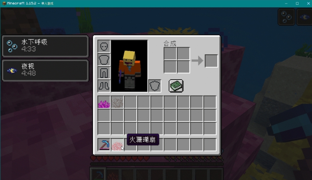 4、我們使用附有精準採集附魔的工具採集完一個珊瑚扇之後,即可獲得珊瑚扇了。