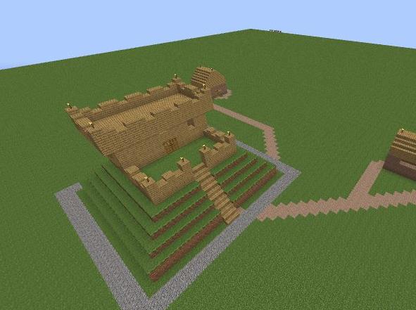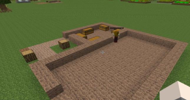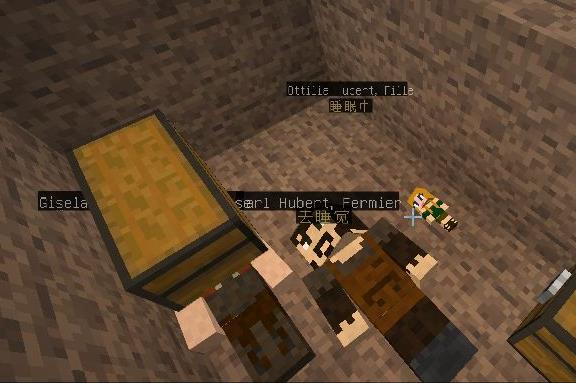 7、走進自己村莊的大廳,裡面有很多箱子,隨便向一個箱子里放建築材料或食物,(和npc的村莊一樣,只是可以隨便拿)然後讓村民去建房,放食物增長人口,村莊很快就會強盛起來喲!(圖為正在建築的房子)