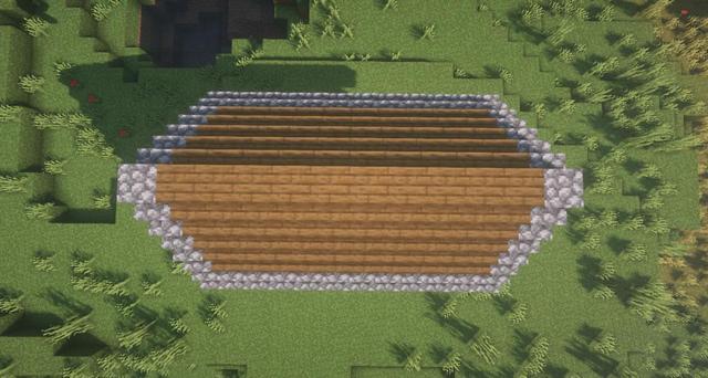 1.首先在地上圈一個10*6的長方形,中間用橡木木板和雲杉木木板鋪設地板。