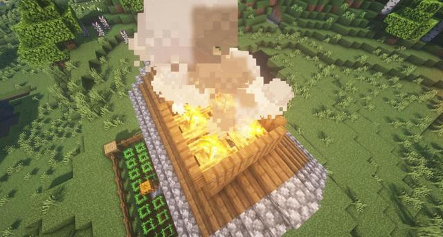 19.將雲杉木活板門圍住的雲杉木木板換成營火。