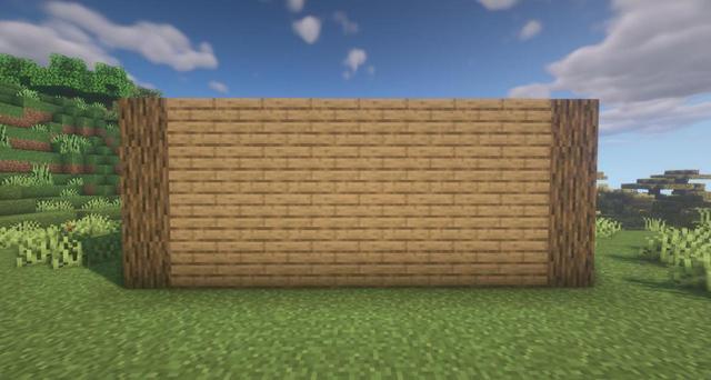 18.在最上面一層的雲杉木木板周圍圍上雲杉木活板門。