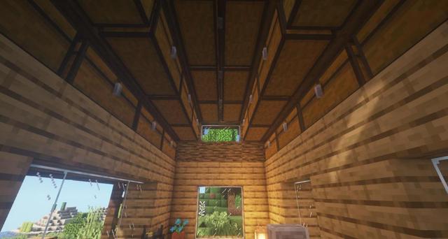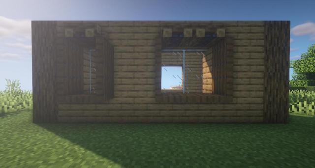 11.用橡木原木和玻璃板補全上方,房子背面也是這樣哦。