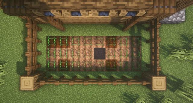 14.另一邊可以用柵欄修一個菜園,種上胡蘿蔔呢。在菜地中間放一桶水。