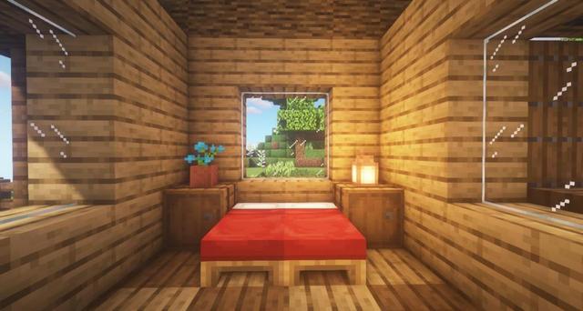 21.把房間內部裝飾一下吧。放上兩張床,用木桶做床頭櫃,再擺上燈和花。