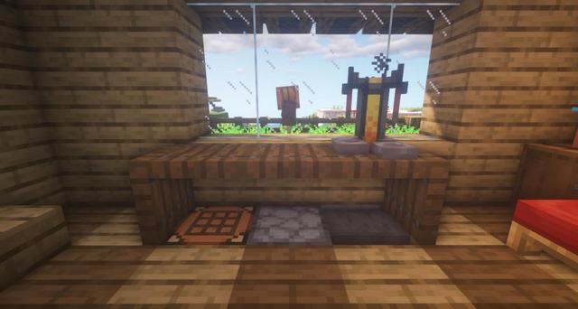 5.然後用營火和雲杉木活板門裝飾一下,別忘記放玻璃板哦。