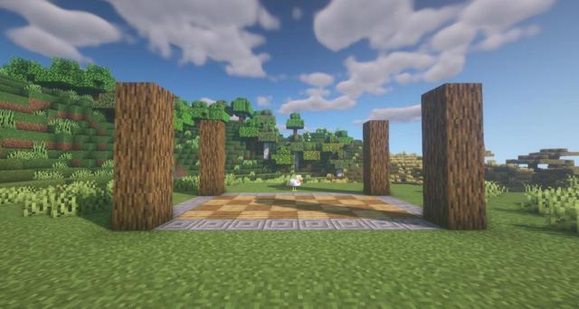 2.用橡木原木搭建四根高度為4的柱子。