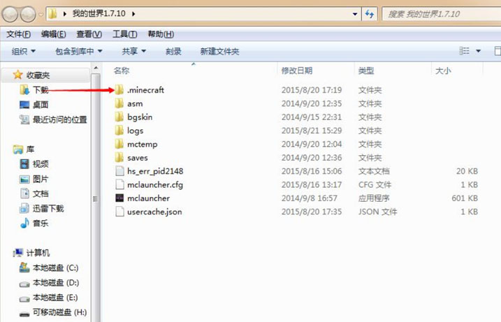 2.打開我的世界文件夾,打開.minecraft文件。