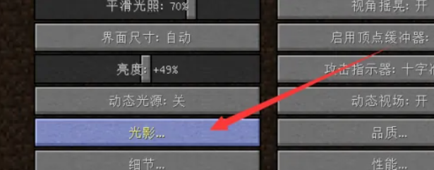 4、接著,我們需要在視頻設置界面中找到「光影」選項卡,注意:只有安裝了光影mod或者Optfine HD的小夥伴才會有此選項,如果未進行裝載請先去裝載。