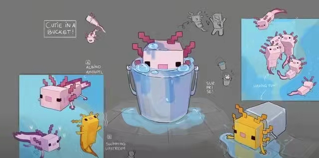 六角恐龍魚,也就是蠑螈,是【我的世界】遊戲史上第一隻兩棲動物,而馴服它們的方式也很奇特,只要把它們裝到水桶里就行了。
