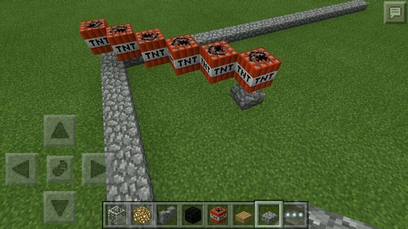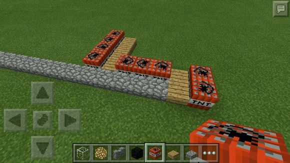 3.在相隔三格放四個半磚(用tnt數格)