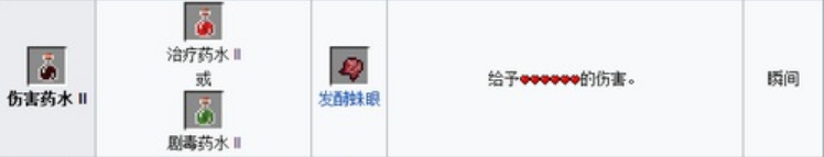 16.傷害藥水Ⅱ=粗製藥水 閃爍的西瓜 發酵蛛眼 螢石粉(瞬間傷害給予6顆心的傷害)