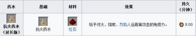 1.抗火藥水=粗製藥水 岩漿膏(3:00)有效時間內對火、熔岩、烈焰人火球等免疫傷害