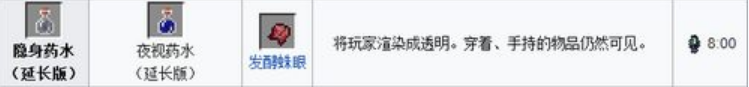 11.隱身藥水延長版=粗製藥水 金蘿蔔 發酵蛛眼 紅石粉(8:00)使用有效時間延長至8分鍾