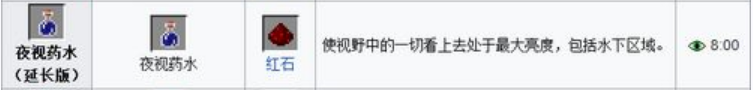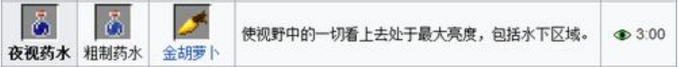 6.夜視藥水=粗製藥水 金蘿蔔(3:00)使玩家視野範圍內處於最大亮度,包括水下