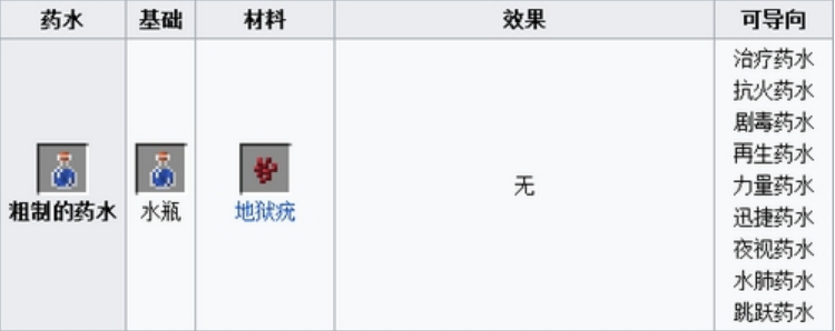 1.粗製的藥水=地獄疣 水瓶(製作藥水的基礎,直接喝無任何作用)