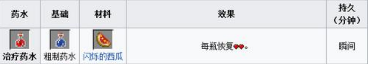15.傷害藥水=粗製藥水 閃爍的西瓜 發酵蛛眼(瞬間傷害給予3顆心的傷害)
