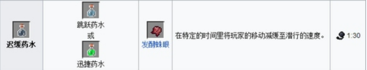 19.遲緩藥水=粗製藥水 糖 發酵蛛眼(1:30)有效時間內將玩家行動速度減緩至潛行速度
