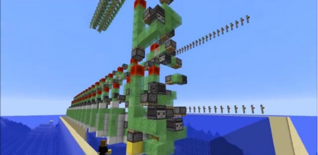 與「紅石大炮」一樣,只要機器數量夠多,速度夠快,就能達到不一樣的效果。尤其是當你將「紅石脈沖」的頻率達到極限時,一秒3發完全不是夢。