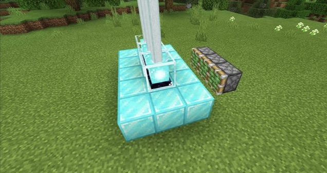 5、接著選擇你喜歡的顏色的玻璃塊,擺在信標上方,這樣就能得到我們想要的激光顏色了