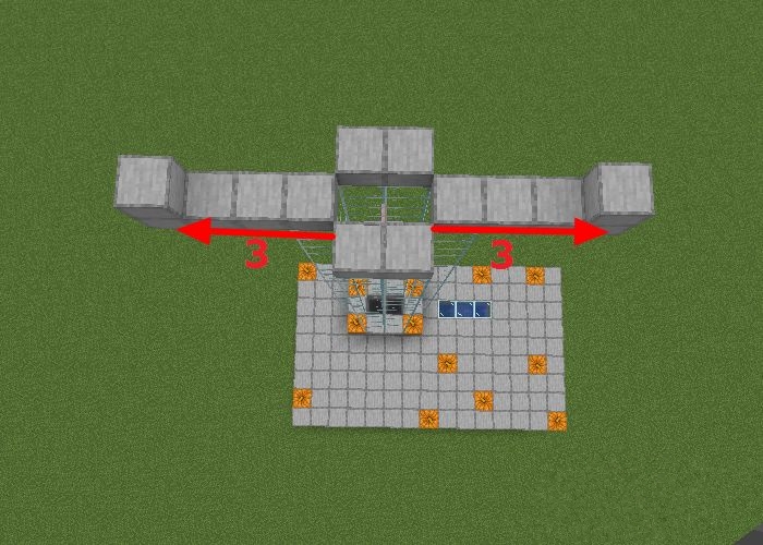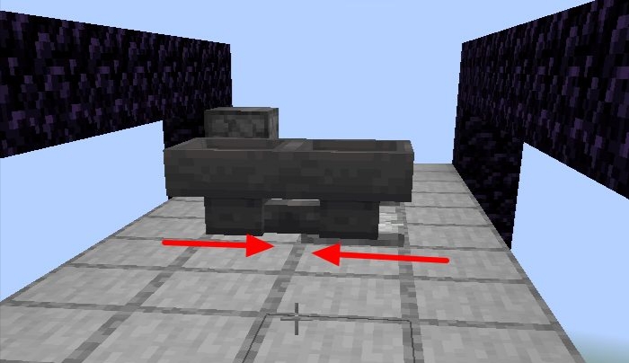 13、以黑曜石向下空出一格放置石頭,然後連接兩邊形成一個平台