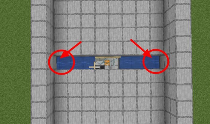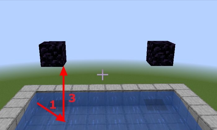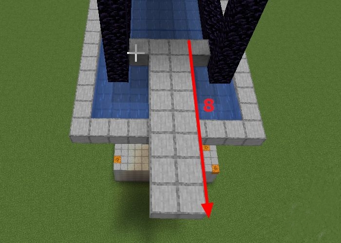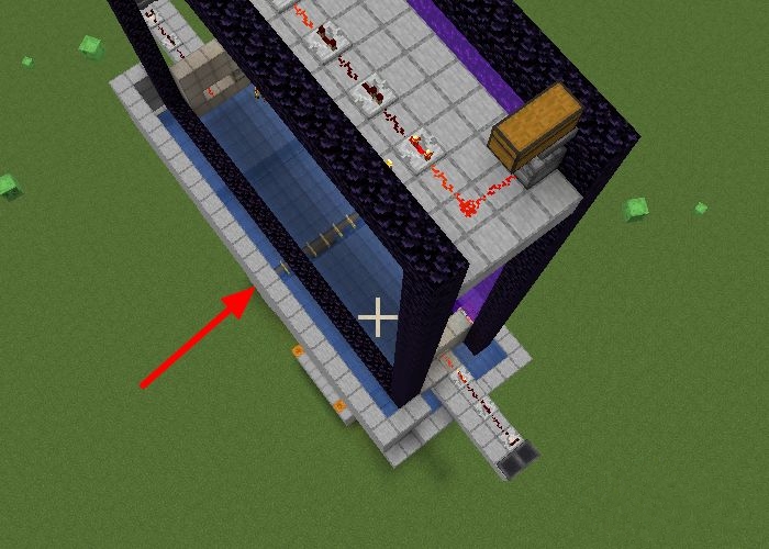 10、水流整體收縮一格,高3格的位置放一個黑曜石