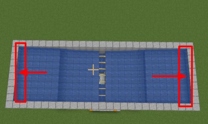 6、將中間掉落區域貼上兩個告示牌用來阻斷水流