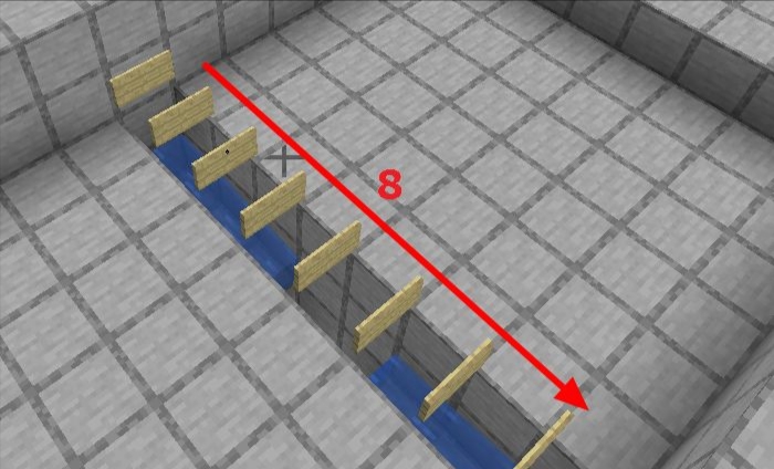 8、水流上方高一格貼上一個告示牌,然後按一個方向繼續貼上告示牌來阻斷水流