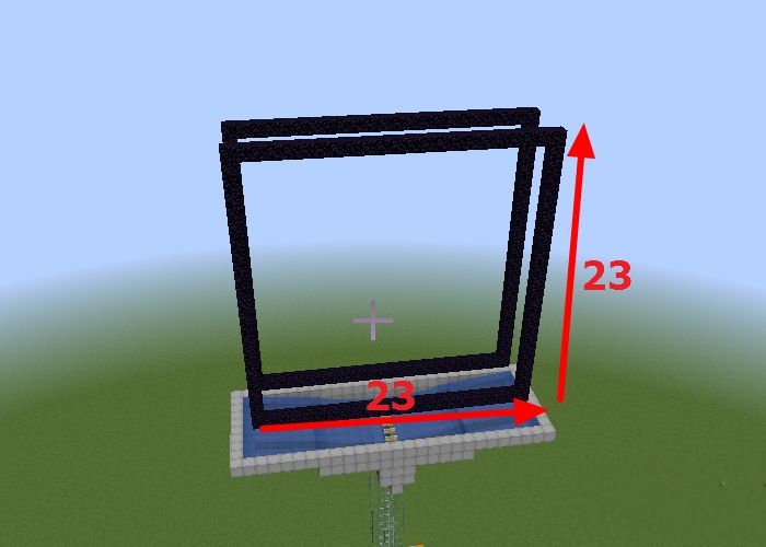 12、連接兩邊的黑曜石,再整體提高23格(這里純粹是為了美觀可以整體對稱,大家黑曜石不夠可以適當減少個數)連接起來