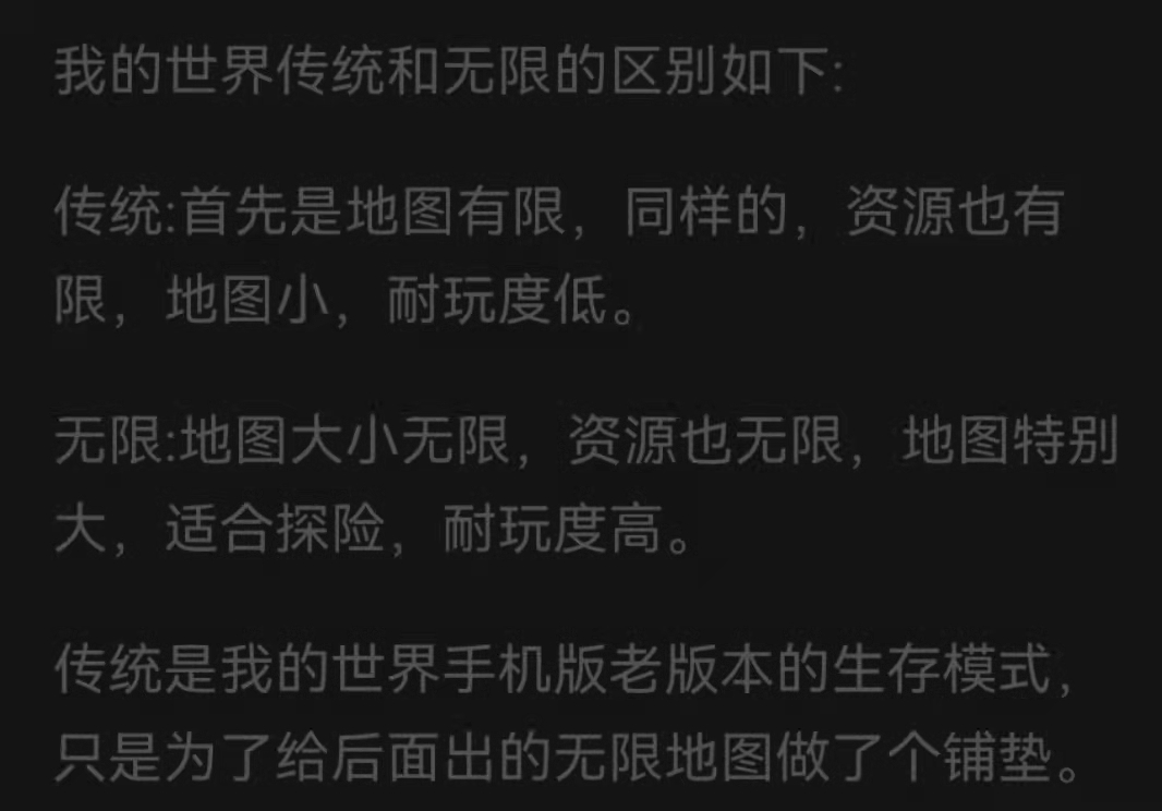 首頁 我的世界 問答 我的世界傳統和無限區別是什麼? 2022-08-30 在我的世界遊戲當中,傳統指的是舊版的,他的地圖是有邊界的,而且邊界類似隱形基岩,玩家穿不過去,也不能正常啟動傳送門;無限指的地圖是可以無限擴大且沒有邊界,同時可以自動開拓地圖,詳情可觀下圖: