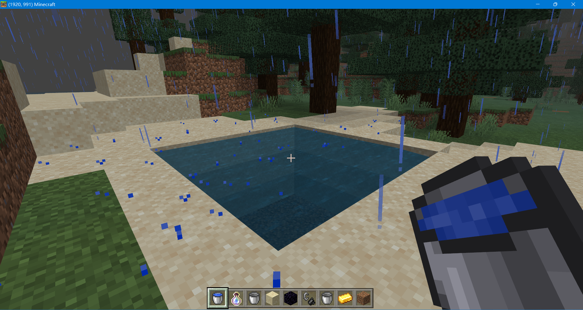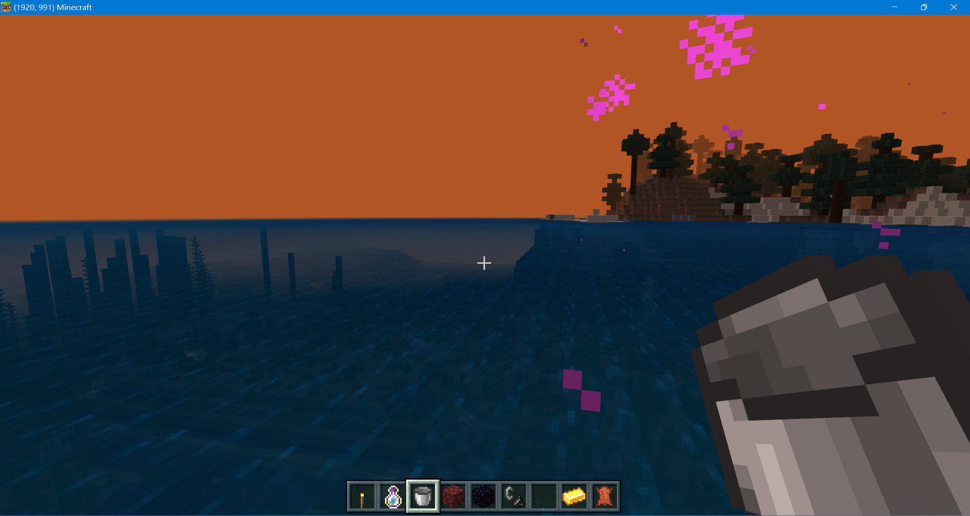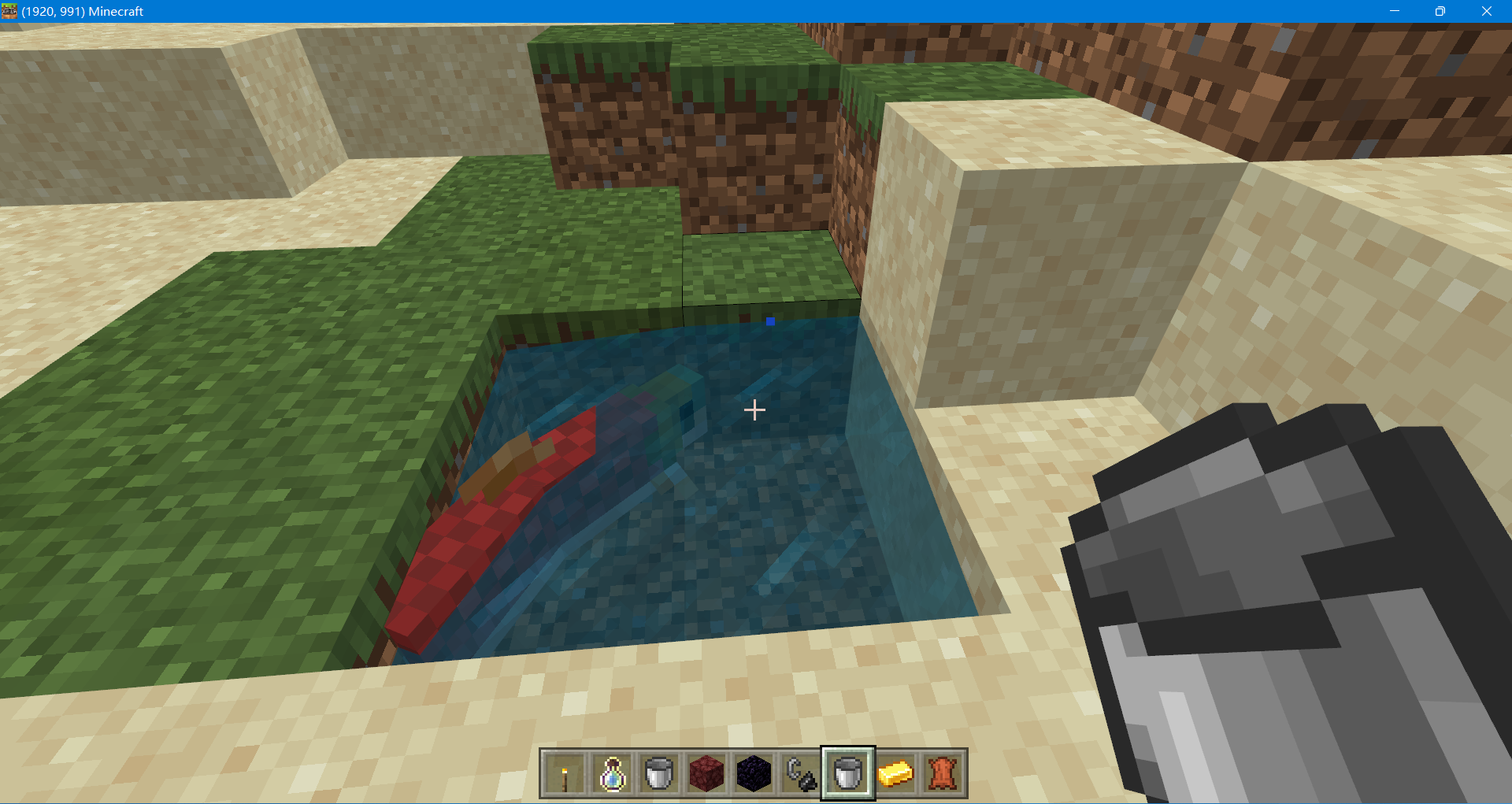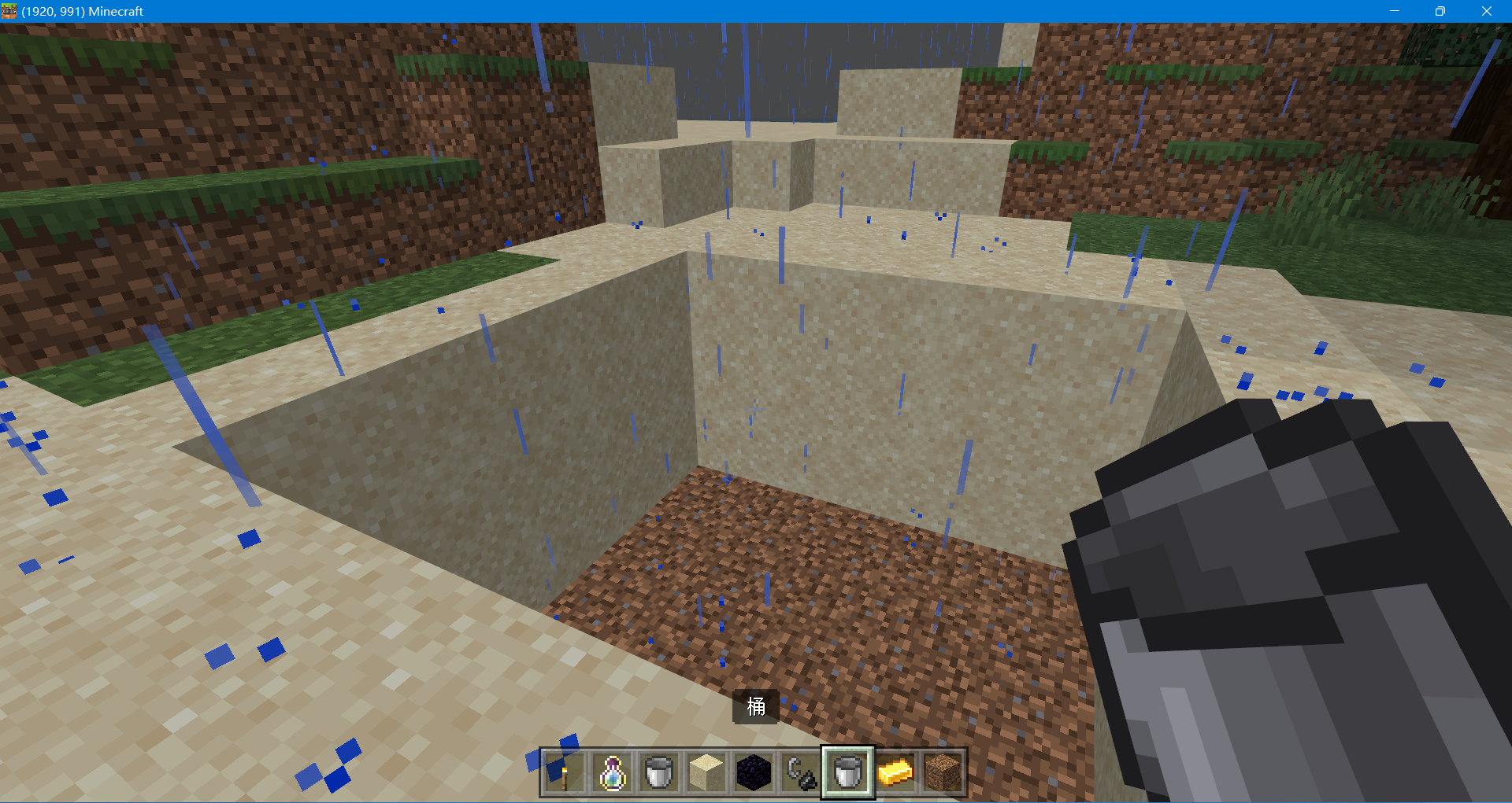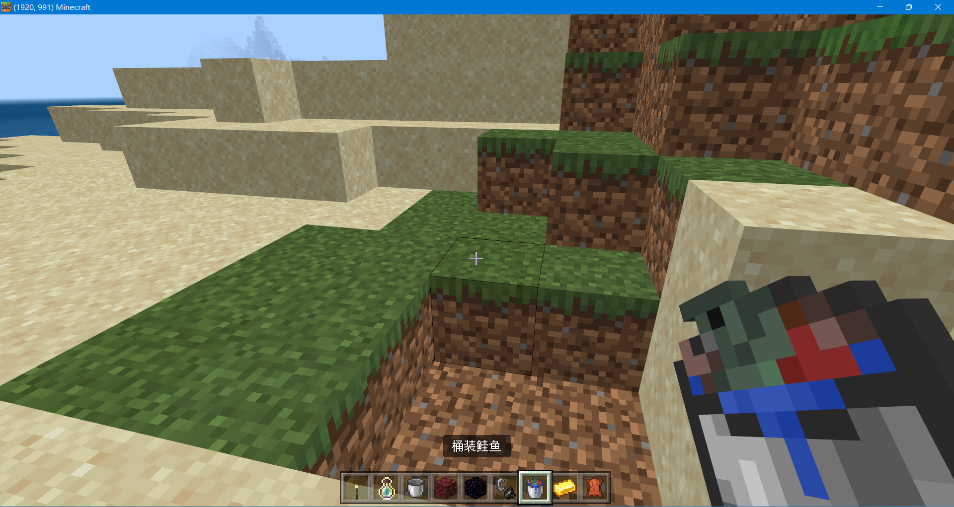 2、找到一條魚,拿著裝滿水的木桶右鍵魚(你也可以直接下水右鍵魚),這樣就獲得了桶裝魚。