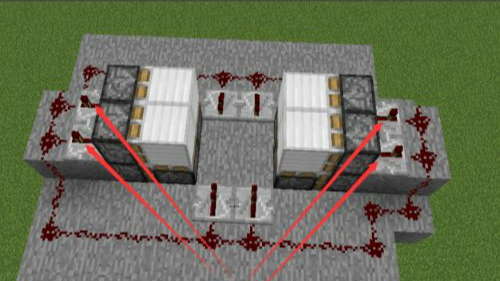 5.用紅石線連上,並且將圖中4個中繼器調為3/4擋。