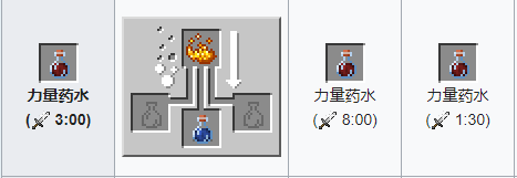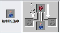 材料:粗製藥水 烈焰粉。藥水效果:提高角色傷害能力一個半心的傷害,添加螢石粉,效果翻倍。