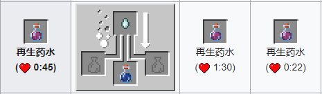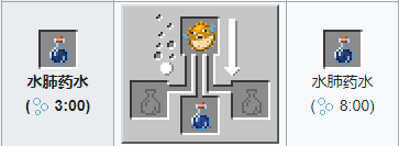 材料:蜘蛛眼 粗製藥水。藥水效果:在特殊時間內令小夥伴們中毒,生命降低至半個4,每1.5秒少一個半心,添加瑩石提高效果,時間遞減。