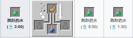材料:兔子腳 粗製藥水。藥水效果:將生物的跳躍高度提升¼個方塊。最多可提升到8分鍾。
