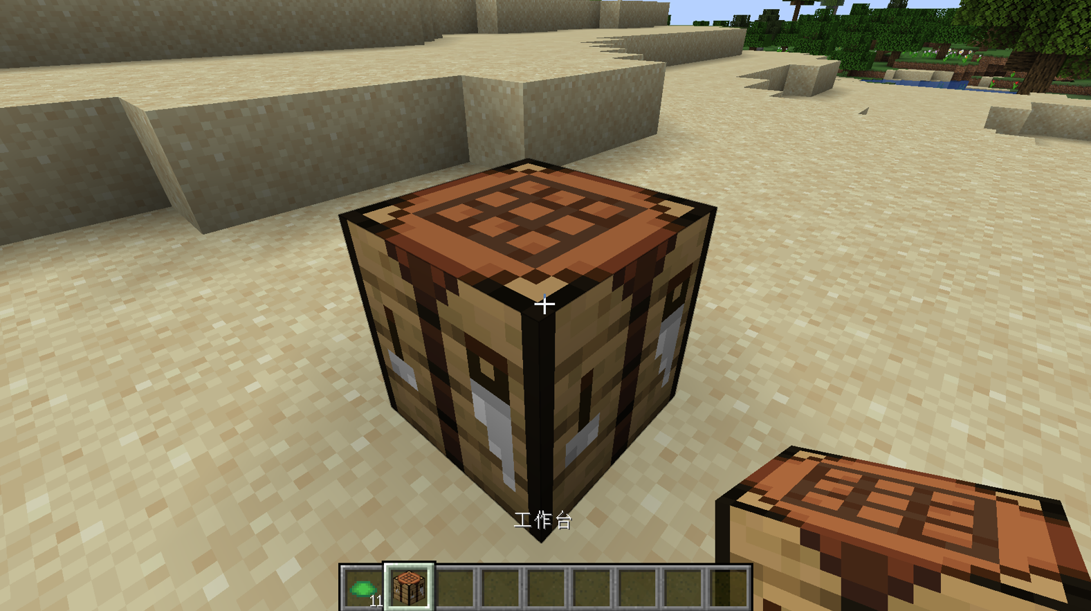1、打開遊戲我的世界,玩家想要製作海龜帽需要准備材料五個麟甲,然後拿出工作台放置在地面上,右鍵打開工作台。