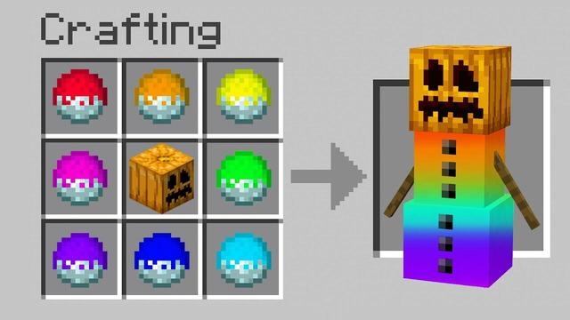 3、彩色雪傀儡。雪傀儡在遊戲中可以合成,不過並不是通過合成表,而是擺放合成。在老玩家的手中,雪傀儡也加入到合成表的行列。合成後的效果比較浮誇,用南瓜頭以及各種各樣的彩色雪球來合成一個彩色的雪傀儡