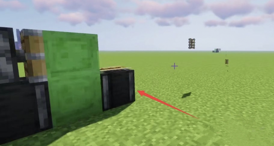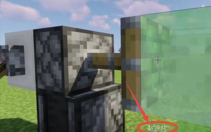 1、首先放置朝上的探測器。將支架的最上面一個換成偵測器。注意,偵測器輸出紅石信號一側朝上。 然後將粘液塊圍繞偵測器放置(如圖所示)。