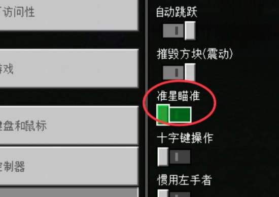 四、在右側的菜單中找到準星瞄準並點擊,如下圖所示;