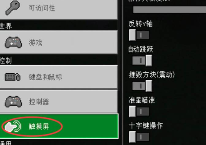 三、在左側選項中找到觸摸屏,如下圖所示;
