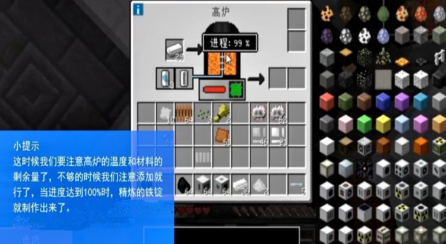 首頁 我的世界 問答 mc精鍊鐵錠怎麼做? 2022-09-01 首先在一個合適的地方放下高爐,在高爐中放入鐵錠、壓縮空氣單元等材料就可以製作。接下來就可以安心等待提煉的進度了,這時候要注意高爐的溫度和材料的剩餘量,不夠時要注意添加材料和溫度。當進度達到100%時精鍊的鐵錠就製作完成了。