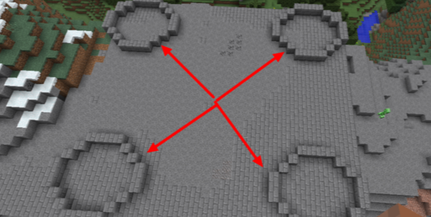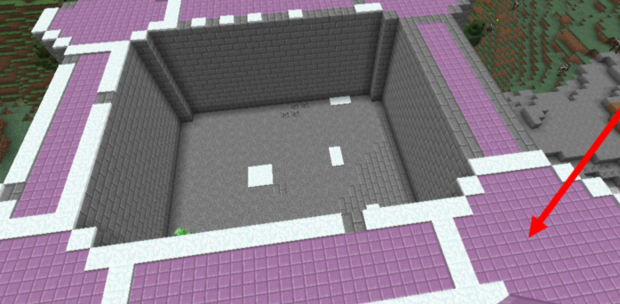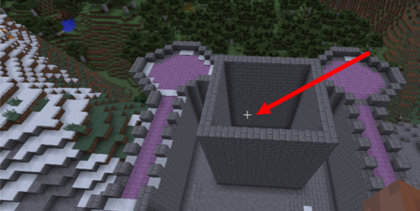 2、在這個平台的4個角落,先造4個城垛的地基,如圖,方塊就用石磚,這樣接近實際的城堡建築材料。